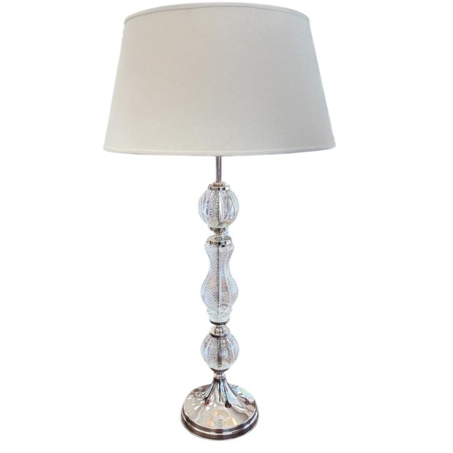 LAMPARA DE MESA BOCHA PLATA Y ALFIL VIDRIO