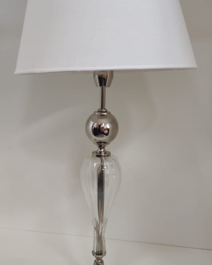 $240.000,00LAMPARA DE MESA ENFILAJE DE VIDRIO Y BOCHA PLATA
